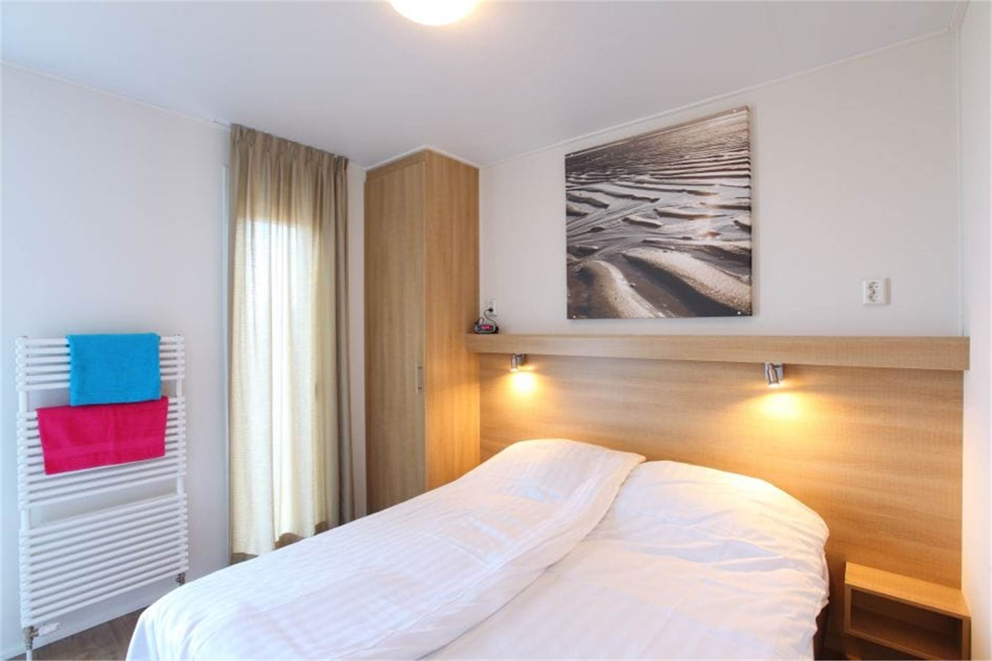 Ce lodge individuel construit de plain-pied peut accueillir 4 personnes. Dans le salon avec smart TV, vous trouverez un coin salle à manger séparé et la cuisine est équipée, entre autres, d'un lave-vaisselle, d'un micro-ondes combiné et d'une machine à café à dosettes. Il y a 2 chambres, chacune meublée de 2 lits simples et avec 2 salles de bains avec douche. Le lodge dispose également d'un jardin meublé. L'utilisation du Wifi est gratuite et le lodge dispose d'une place de stationnement pour une voiture. Certains lodges sont luxueusement équipés avec une machine à laver, un sèche-linge, une télévision dans la chambre à coucher, un ensemble de salon et des chaises longues. Ces lodges peuvent être réservés de préférence.